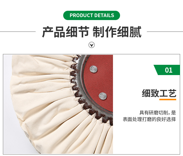 (3)細拋:一般由綠色拋光膏或白色拋光膏配合純棉布輪使用,為拋光的尾道工序,拋后工件呈鏡面或高光效果。區別為前者帶青光,后者帶白光。