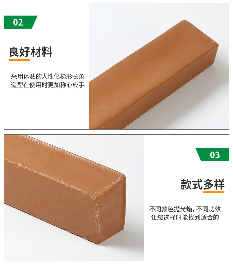 | 黃臘 | 黃臘 | 20 | 與麻布輪配合使用針對不銹鋼,鐵,鋁,銅,鋅等有著較好的切削與亮度... |