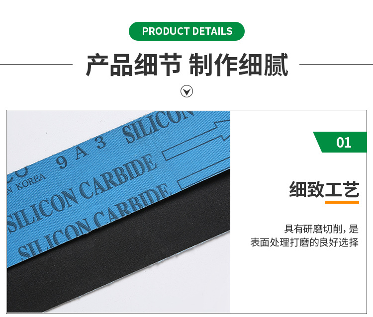 砂布屬性:處理棕剛玉、混紡布、密植砂、砂布柔軟有韌性,適合做窄砂帶。